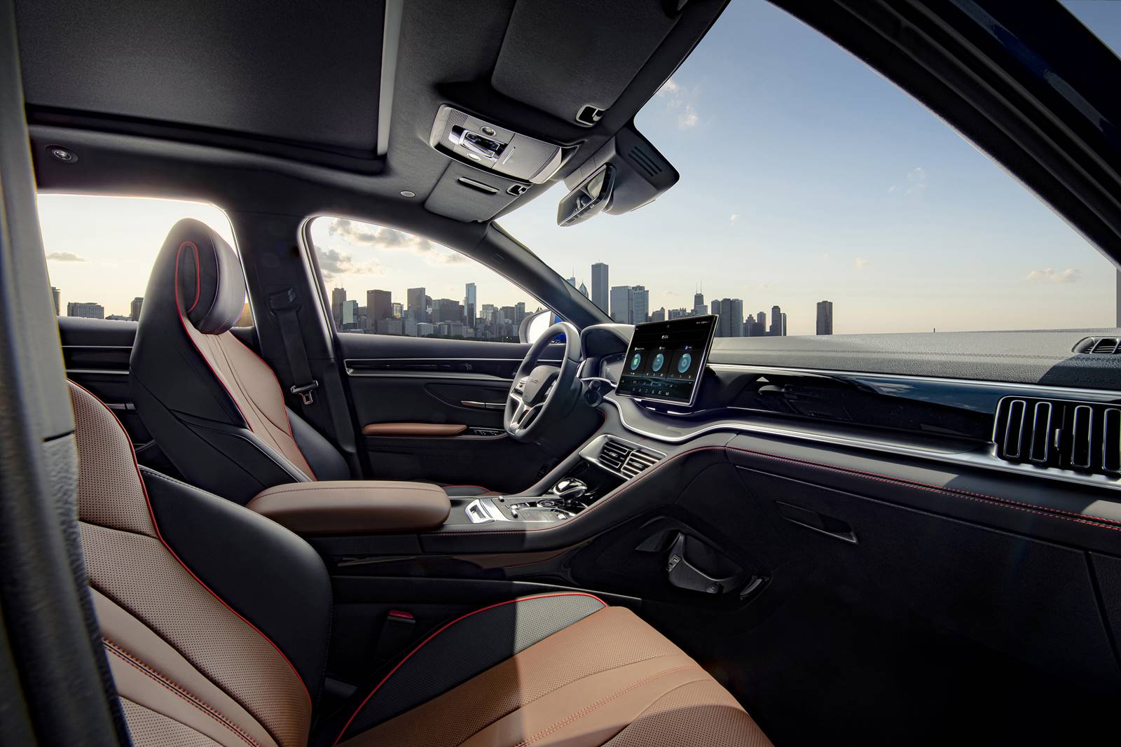 Há ainda ar condicionado dual-zone com saída para o banco traseiro, carregadores wireless para smartphones, iluminação ambiente em LED com 31 opções de cores, porta malas com sistema elétrico de abertura e fechamento da tampa por botão ou gesto – basta passar o pé embaixo do para-choque. Há ainda chave inteligente com tecnologia NFC que permite entrar no carro e dar a partida usando o smartphone, entre outros itens.