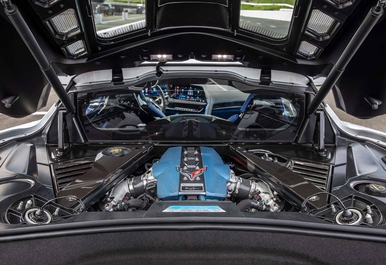 No coração do Corvette ZR1X está o motor LT7 5.5L V8 DOHC biturbo, posicionado centralmente – atrás dos bancos dianteiros, este V8 sozinho gera 1.064 cv a 7.000 rpm e 828 lb-ft (cerca de 112 kgfm) de torque a 6.000 rpm. O conjunto é completado por um motor elétrico compacto instalado no eixo dianteiro que adiciona 186 cv e 145 lb-ft (25,4 kgfm). Juntos eles entregam 1.250 cv e 134 kgfm.