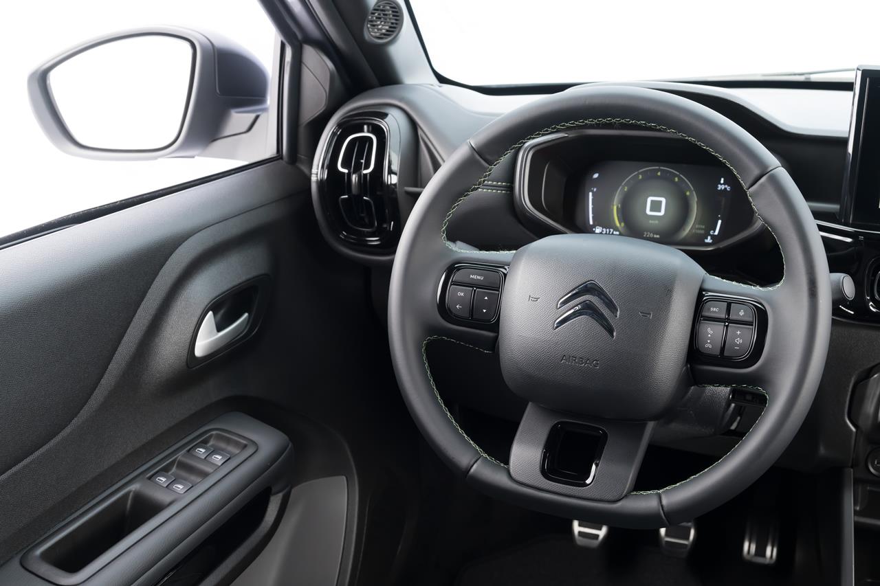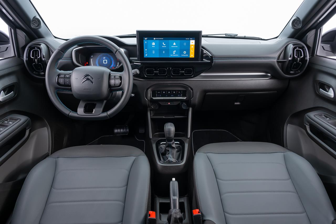 Além disso, o acabamento interno do C3 XTR é mais sofisticado com bancos revestidos em material premium (couro sintético) com costuras na cor verde, já vindo também com painel digital de 7 polegadas, soleira nas portas em alumínio, maçanetas internas cromadas, volante e painel com revestimento premium e costuras na cor verde, interior com acabamento escurecido na coluna e no teto, além de ar-condicionado automático digital. Há ainda a  nova opção de cor Cinza Artense para a carroceria e opcionalmente o teto pode vir pintado em preto brilhante.