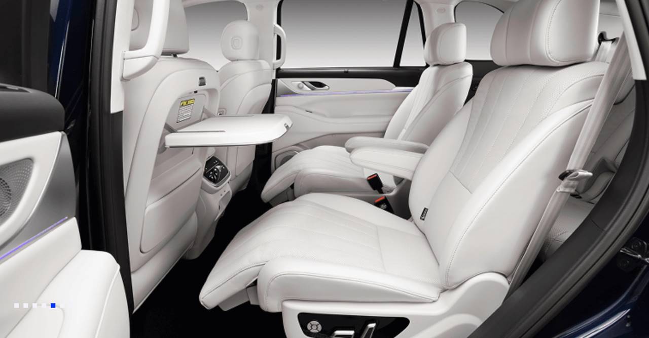 A lista de equipamentos é extensa, por isso vamos falar apenas alguns destaques como: bancos dianteiros com 12 ajustes elétricos, aquecimento, ventilação e função massagem com 8 tipos intensidade, banco do passageiro reclinável e com descansa pés, bancos traseiros também elétricos com funções ventilação, aquecimento, massagem e inclinação com descansa pés, acabamento para os assentos em couro Nappa, teto solar panorâmico, ar-condicionado tri-zone (com três zonas independentes de temperatura), além de iluminação ambiente em LED e aquecimento para o volante.