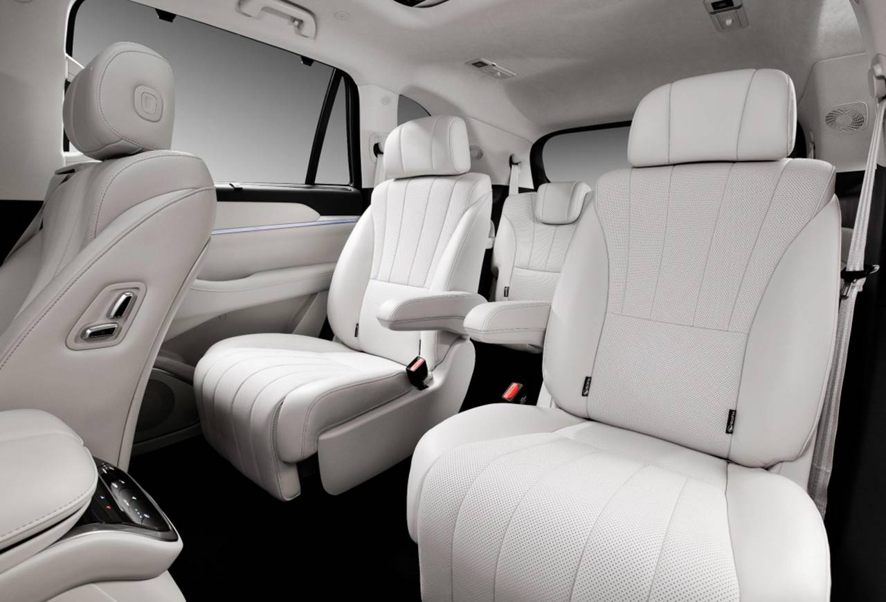 Por fim não podemos deixar de falar do interior do GWM Wey 07 que é um verdadeiro show a parte, seguindo a Great Wall a ideia na cabine do SUV é criar uma ambiente semelhante a primeira classe de um avião, o habitáculo é todo forrado com matérias nobres e macio ao toque como couro sintético, o teto é todo forrado em couro aveludado Alcantara, quem viaja atras conta com persianas retráteis.