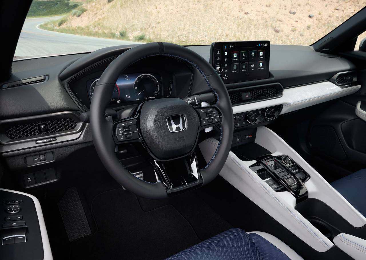 No interior, o novo Honda Prelude 2026 tem um desenho próprio, apesar de compartilhar elementos com o Civic, como o quadro de instrumentos digital de 10,2 polegadas, a central multimídia de apenas 9 polegadas com Apple CarPlay e Android Auto sem fio, além da posição de alguns comandos.