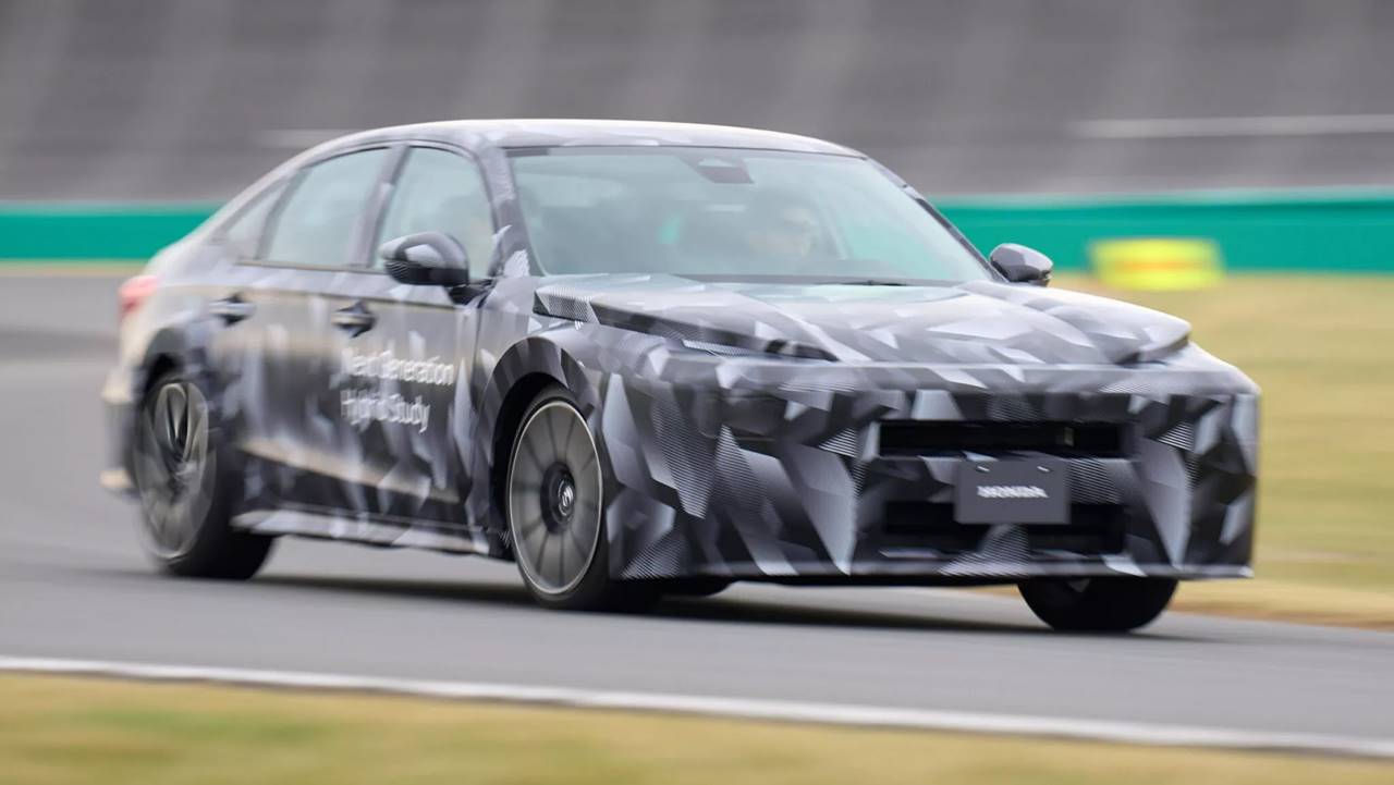 A Honda aproveitou e divulgou um protótipo da nova geração do Civic, na verdade é uma mula de testes com a plataforma nova e a carroceria antiga, esta nova base do Civic 2027 também será mais aerodinâmica. A Honda deve fazer uma volta ao passado, quando o Civic tinha uma proposta de carroceria mais baixa, esportiva (décadas de 1990 e 2000) com uma condução mais divertida, note a dianteira do protótipo acima mais baixa e aerodinâmica. O visual e proposta de condução do novo Civic 2027 deve ser baseado no novo Honda Prelude (foto abaixo).