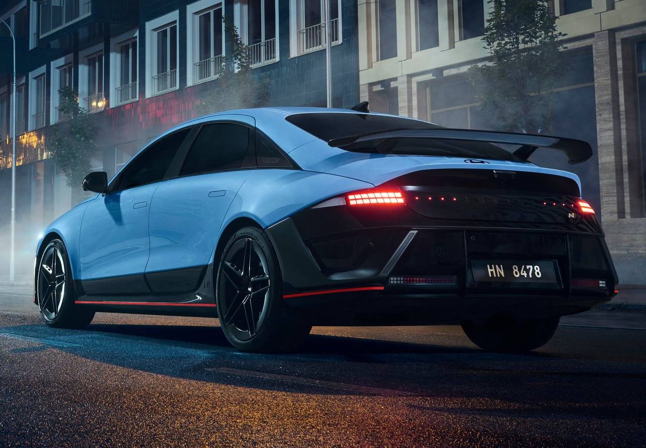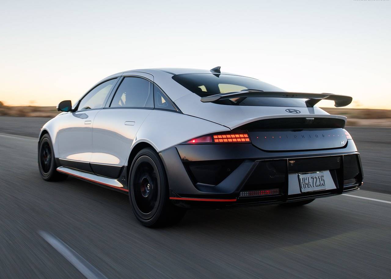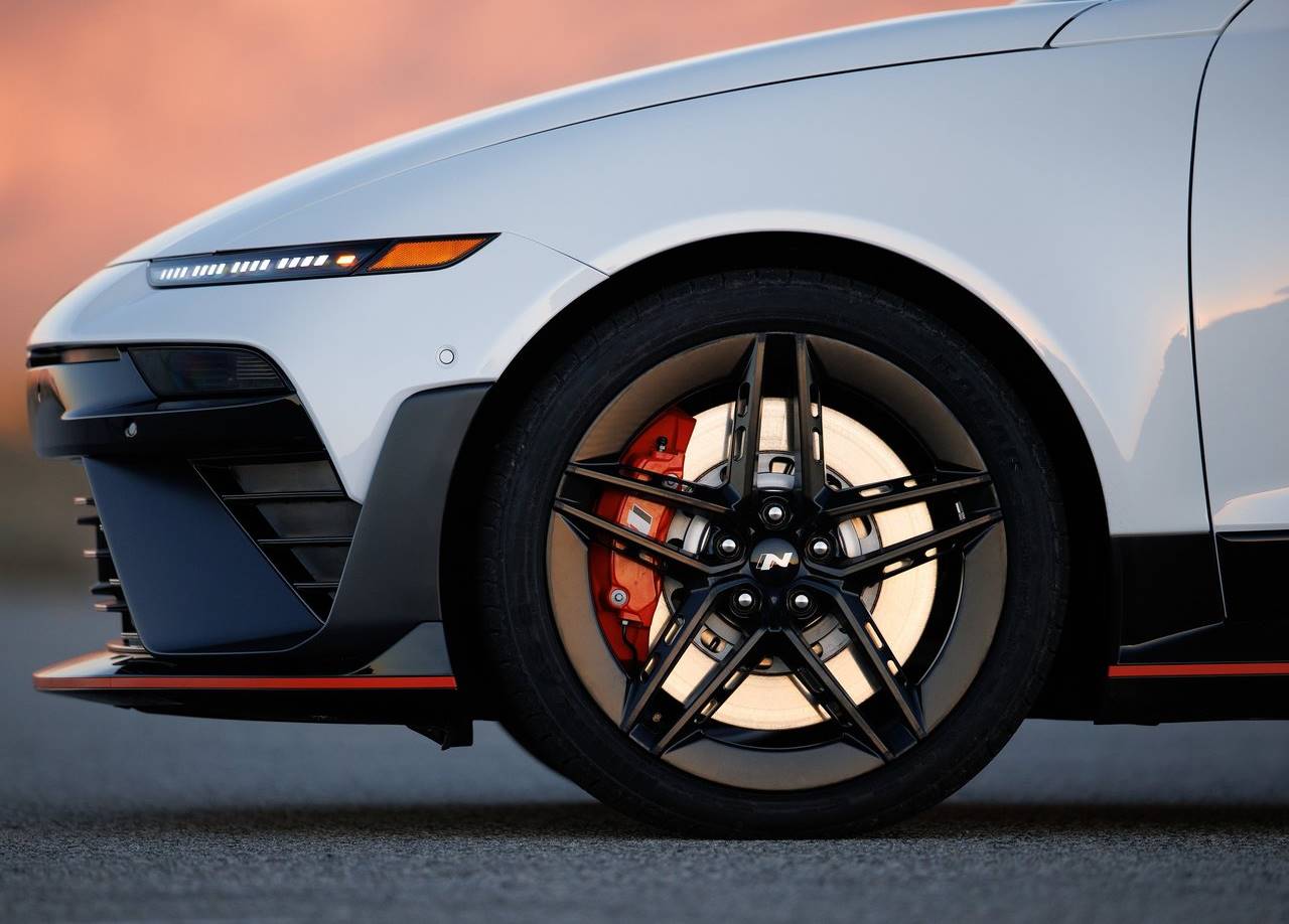 Um detalhe curioso é que em relação a versão normal do Ioniq 6 lançada em 2022 a nova configuração “N” tem eixos mais largos para melhorar a estabilidade em curvas, na frente ele tem bitola de 1.630 mm e na traseira de 1.639 mm, além de pneus 275/35R20 exclusivos para performance.