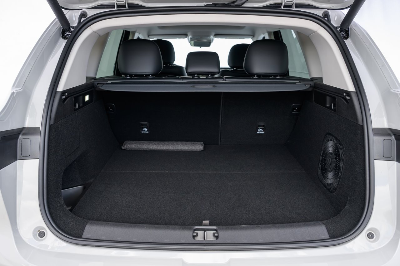 Porém o espaço no porta malas é limitado devido ao sistema elétrico na traseira, são 465 litros na versão elétrica e 435 l na versão Ultra-Híbrida. Sendo que na versão 100% elétrica há ainda um pequeno porta malas frontal com 30 litros.