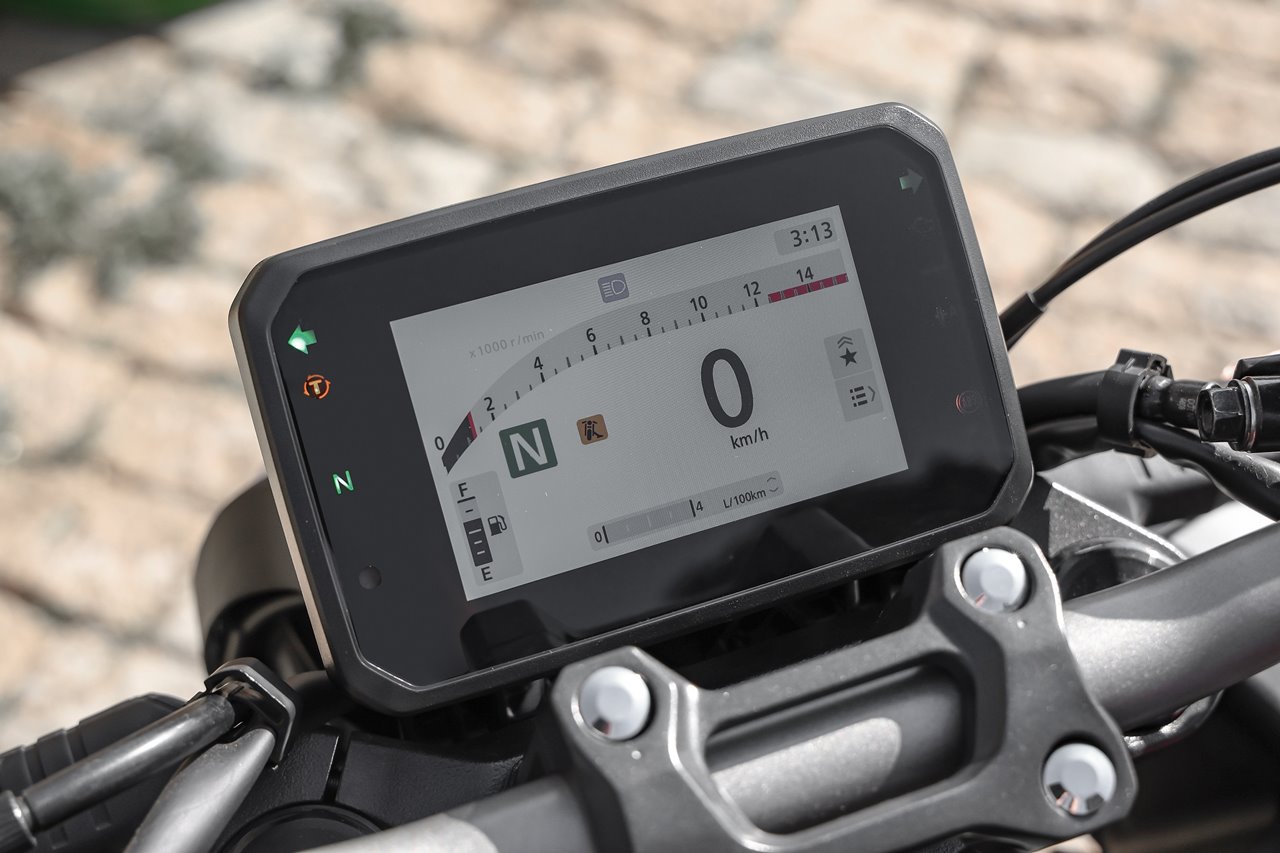 Outra novidade da CB 650R 2026 é seu painel digital em TFT colorido de 5 polegadas com sistema Honda RoadSync para conectividade, esta nova tela tem um tratamento garantir visibilidade sob luz solar intensa, há ainda três modos de visualização das informações: “Barra”, “Circular” e “Simples”.