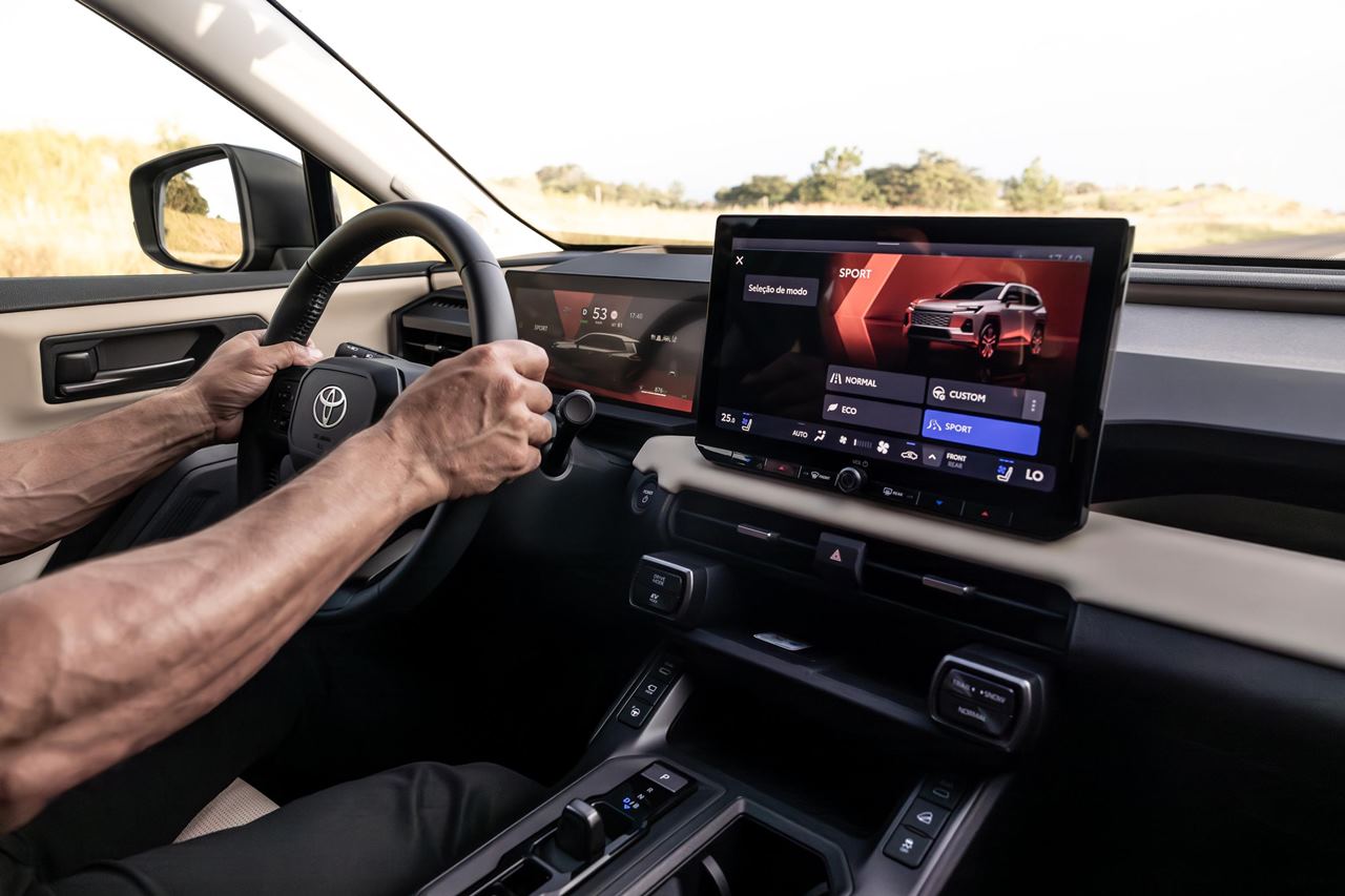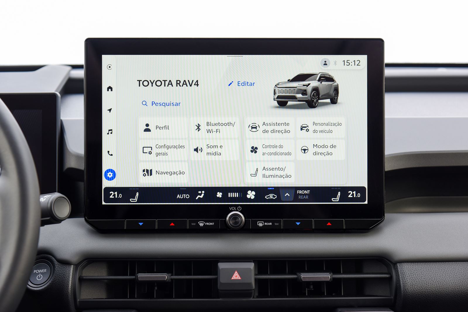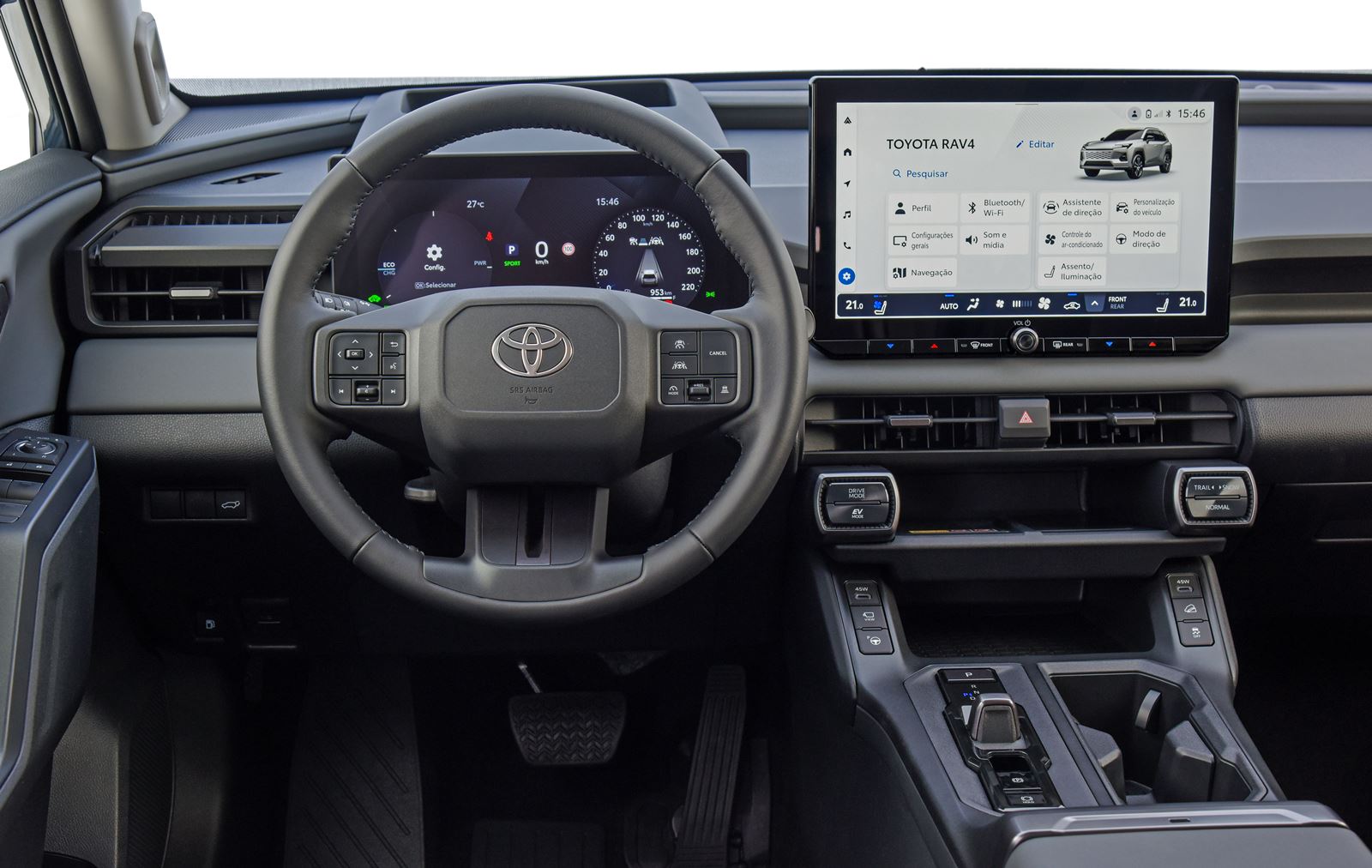 A cabine também foi totalmente atualizada, tem agora linhas quadradas e horizontais, além de telas maiores, o painel digital tem 12,3″ e multimídia mais moderna agora conta um novo sistema operacional e atualizações remotas “over the air”, além de vir com tela de 12,9 polegadas na versão top de linha (a versão de entrada tem multimídia mais simples com 10 polegadas e sem GPS). A Toyota teve bom senso e manteve os botões físicos para a maior parte dos comandos.