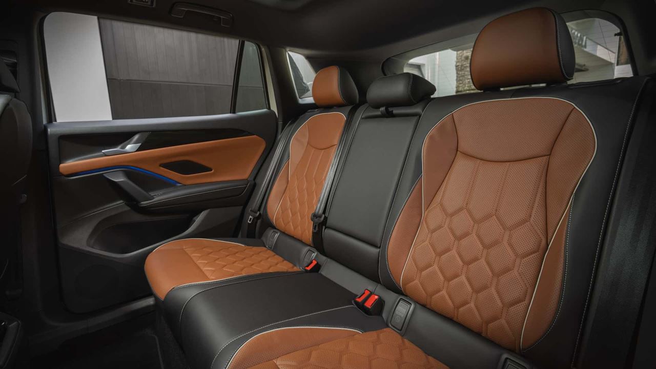 Há ainda de série ar condicionado trizone que permite três ajustes simultâneos de temperatura para o interior, volante aquecido, bancos em couro sintético, iluminação ambiente em LED com 30 opções configuráveis de cores, iluminação de boas vindas com luzes nos retrovisores, teto panorâmico, sistema de estacionamento automático park assist, chave presencial, tampa do porta malas com abertura e fechamento elétrico por botão ou gestos, além de freio de estacionamento eletrônico.