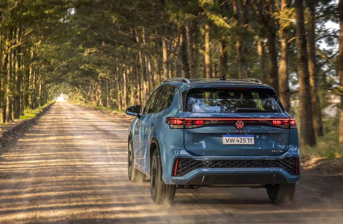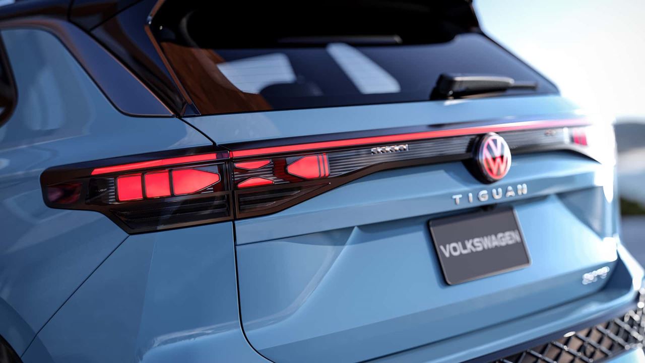 Na traseira o Tiguan passa a ter lanternas mais afinadas conectadas por filete de LED e linhas mais horizontais, elas também possuem tecnologia inteligente IQ. Light e permitem escolher entre três animações diferentes de boas vindas.
