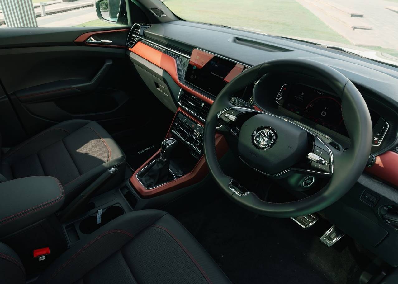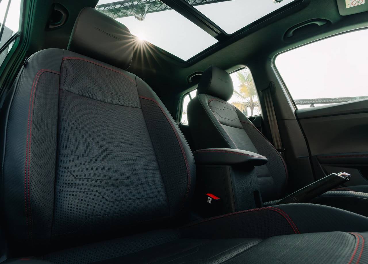 Outra diferença para o Volkswagen T-Cross vendido no Brasil é desenho do painel e o acabamento, bem diferentes do modelo produzido aqui no Brasil, o SUV da Skoda tem opções de revestimentos em dois tons, combinado preto com bege ou preto com detalhes em vermelho. E ai, o que você achou da cabine do Kushaq 2027, gostou ou prefere a do T-Cross?